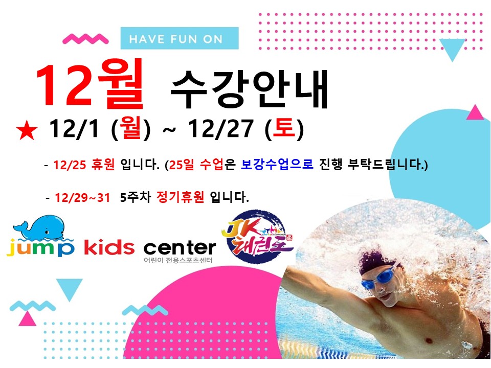 ¢¹ 12¿ù ¼ö°¾È³» (12/1 ~ 12/27) - 4ÁÖ- ±âÁ¸È¸¿ø Á¢¼ö±â°£ : 11/17(¿ù) ~ 11/22(Åä)- ½Å±Ôȸ¿ø Á¢¼ö±â°£ : 11/24(¿ù) ~ 11/28(±Ý)- ¼ö¾÷½Ã°£ : ÆòÀÏ 3½Ã / 4½Ã / 5½Ã / 6½Ã / 7½Ã / 8½ÃÁÖ¸» 9½Ã / 10½Ã / 11½Ã / 12½Ã¢¹ 12/29~31 5ÁÖÂ÷ Á¤±âÈÞ¿ø ÀÔ´Ï´Ù. ¡Ø ±âÁ¸È¸¿ø Çкθð´Ô²²¼´Â µî·Ï±â°£³» ¹Ì¸® µî·Ï/º¯°æ ÇØÁÖ½Ã±æ ºÎŹµå¸³´Ï´Ù^^- ¼±Âø¼ø Á¢¼öÀ̹ǷΠƯÁ¤½Ã°£Àº Á¶±â¿¡ Á¢¼ö ¸¶°¨µÉ¼ö ÀÖ½À´Ï´Ù..- ¸¶°¨µÈ ¼ö¾÷ ¿äÀÏ/½Ã°£À¸·Î º¯°æÀ» Èñ¸ÁÇϴ ģ±¸µéÀº ´ë±â¼ø¿¡ µû¶ó ¼ö¾÷º¯°æÀÌ ÁøÇàµË´Ï´Ù..